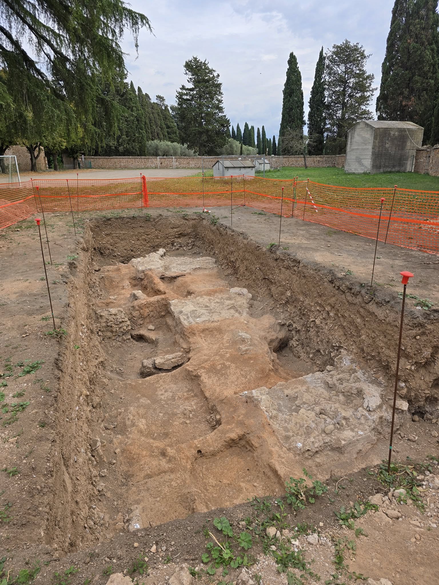 Grazie ad un progetto finanziato con fondi Prin (Progetti di rilevante interesse nazionale) 2022 Pnrr, è stata effettuata una serie di indagini “non invasive” (georadar, tomografia elettrica, magnetometria) alla ricerca dei resti di questi edifici nelle zone più indiziate del comprensorio. E di nuovo, in maniera del tutto inaspettata, a circa cento metri dalla chiesa rinvenuta nel 1991, saggi eseguiti in corrispondenza di significative “anomalie” rivelate dalle prospezioni geofisiche hanno riportato alla luce in questi giorni i resti di una nuova basilica, ancora del tipo “circiforme” — la settima —, dalle dimensioni del tutto simili a quelle della chiesa di Papa Marco.
