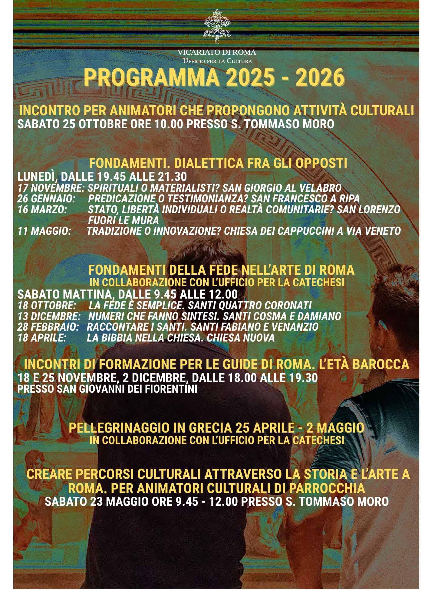 Al link www.culturaeuniversita.org trovate il sito del Servizio per la Cultura e l'Università della Diocesi di Roma, diretto da don Andrea, con tutti gli appuntamenti.