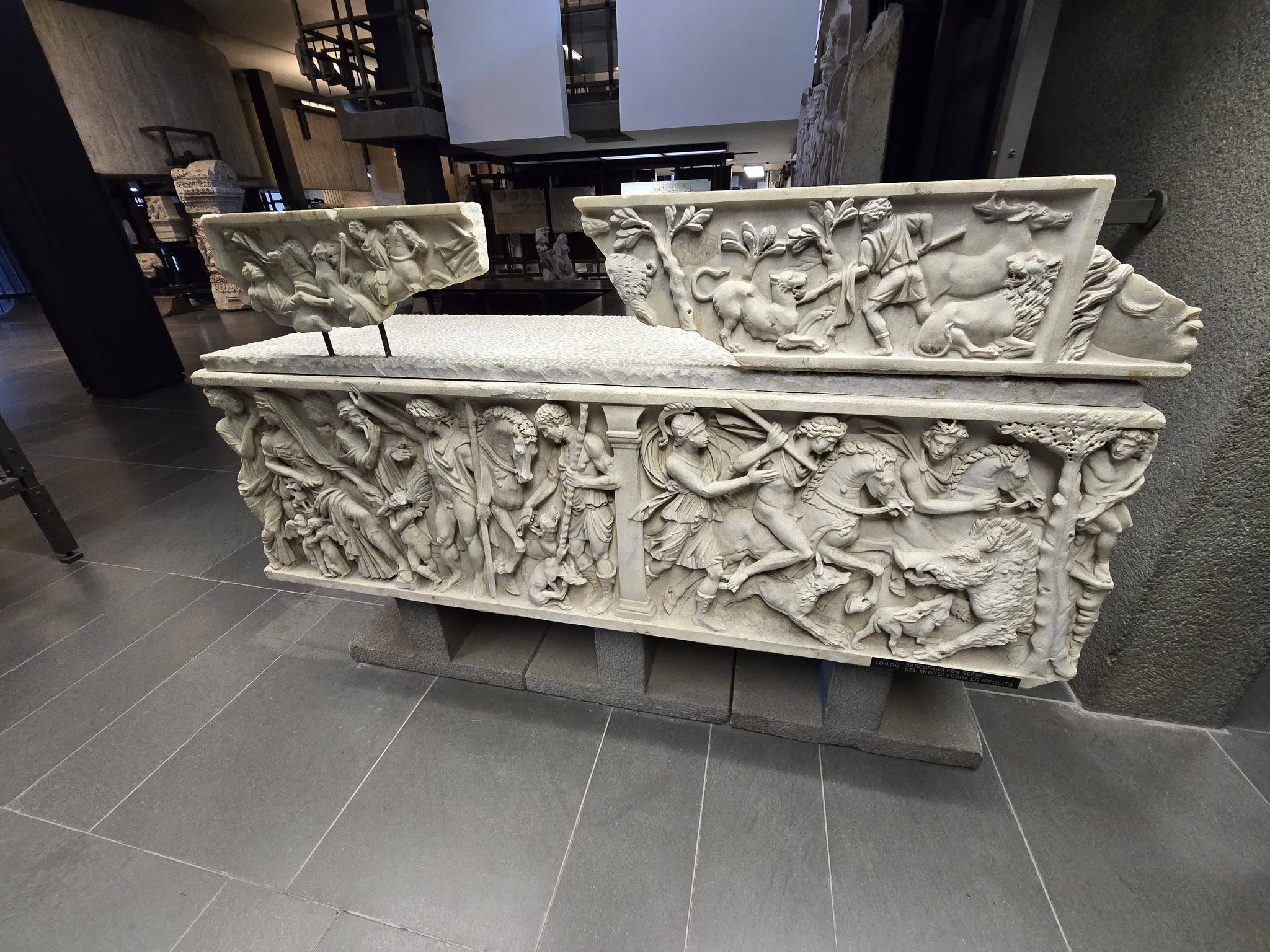 Il sarcofago di Fedra e Ippolito (Inv. 10400, rinvenuto anch’esso nella Tomba dei Pancrazi sulla via Latina, intorno al 1857-1859 e attribuito all’inizio del III secolo d.C.) racconta a sua volta quel mito.