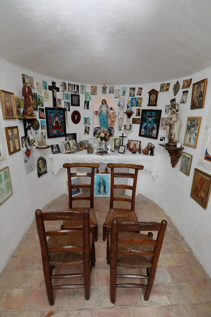 L’interno della cappella di Notre Dame de Garrigue con la statua della Vergine che Brigitte aveva messo al centro, dono di un amico parrucchiere