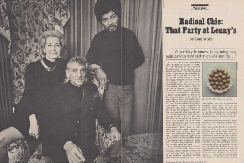 Fu Tom Wolfe, giovane giornalista americano poi divenuto celebre scrittore e padre del New Journalism, a coniarla in un articolo dedicato a una festa esclusiva organizzata da Leonard Bernstein, il grande direttore d'orchestra, a Manhattan. In quel ricevimento di gennaio, tra l'élite ricca di New York e membri delle Black Panthers, un'organizzazione radicale e armata, Wolfe colse il bizzarro intreccio tra la cultura alta e il radicalismo di sinistra, dando vita a una definizione destinata a durare nel tempo.