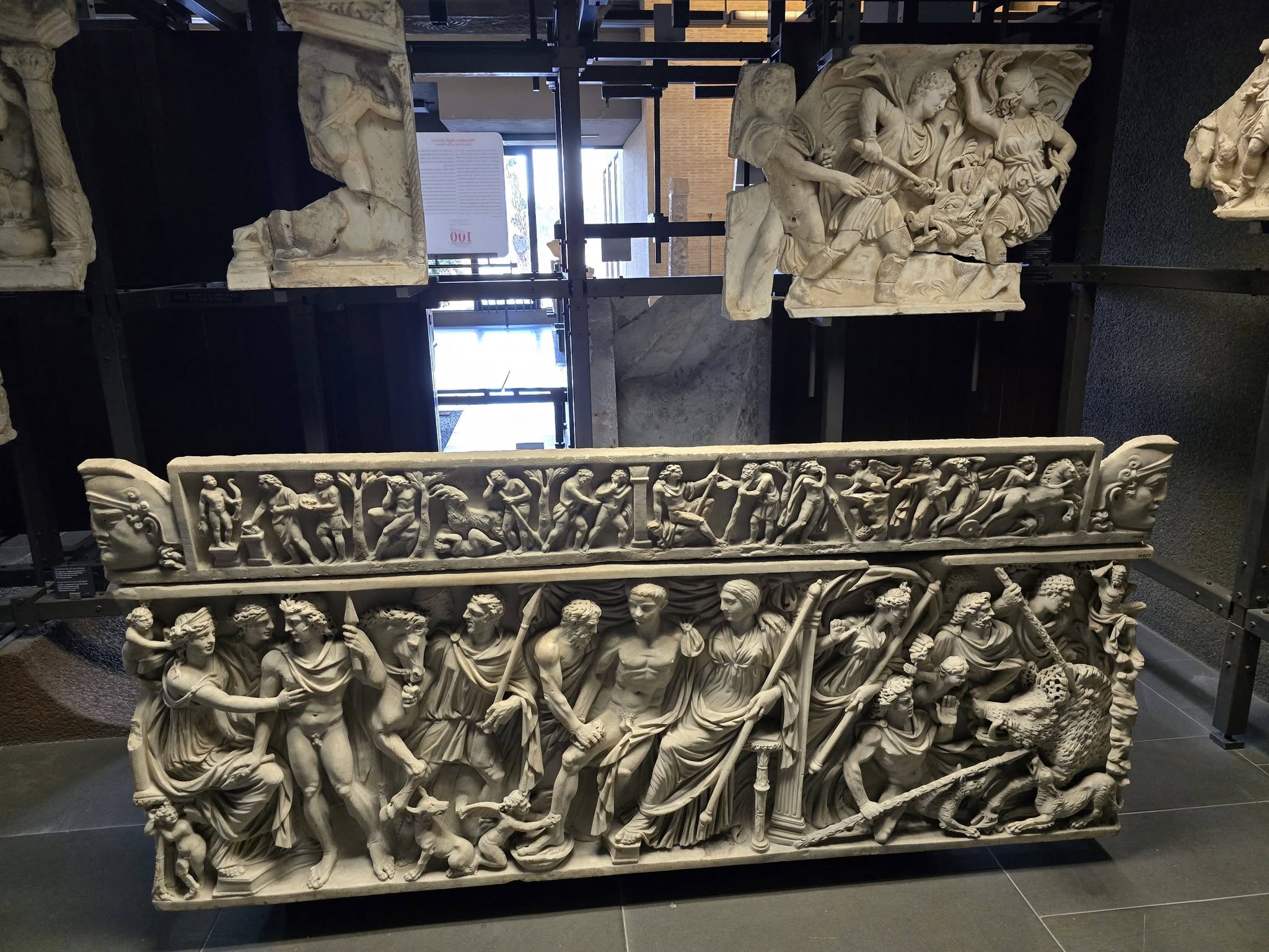 Il sarcofago di Fedra e Ippolito (Inv. 10400, rinvenuto anch’esso nella Tomba dei Pancrazi sulla via Latina, intorno al 1857-1859 e attribuito all’inizio del III secolo d.C.) racconta a sua volta quel mito.