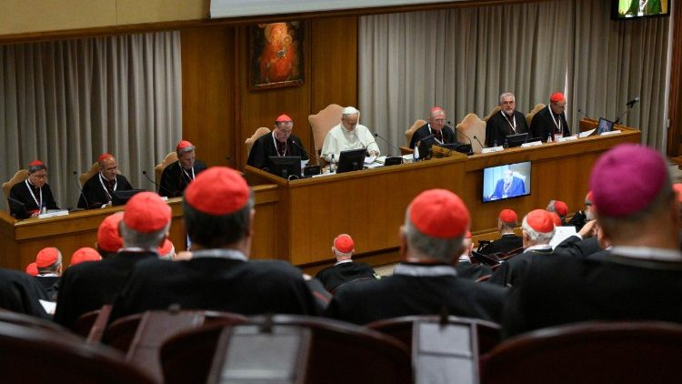 Vorrei cominciare solo ripetendo le parole di uno dei segretari, il primo che ha parlato, che ha suggerito che il cammino è stato tanto importante quanto la conclusione del lavoro al tavolo. Vorrei partire da lì per dire per prima cosa grazie di essere qui! Penso che sia molto importante la partecipazione di tutti voi a questa esperienza come Collegio dei Cardinali della Chiesa, che offre non solo a noi – non è per noi –, offre alla Chiesa e al mondo una certa testimonianza della volontà, del desiderio, riconoscendo il valore di trovarci insieme, di fare il sacrificio di un viaggio – per alcuni di voi molto lungo –, per venire a stare insieme e poter cercare insieme ciò che lo Spirito Santo vuole per la Chiesa oggi e domani. Quindi per questo veramente penso che sia importante, anche se è un tempo brevissimo, però è un tempo molto importante anche per me, perché sento, sperimento la necessità di poter contare su di voi: siete voi che avete chiamato questo servitore a questa missione! Allora, vorrei dire, penso che sia importante che lavoriamo insieme, che discerniamo insieme, che cerchiamo ciò che lo Spirito ci chiede.